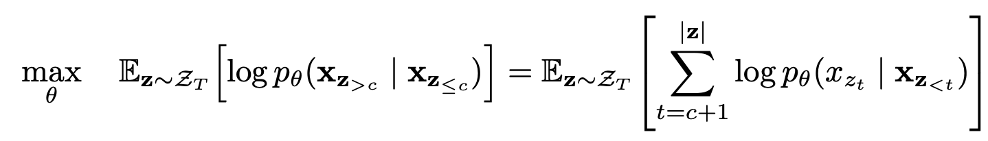 * 위 식에서 c는 cutting point이다. 즉, target sequence와 non-target sequence를 나누는 경계가 되는 토큰을 뜻한다. 따라서 $x_{z_{>c}}$ 는 target subsequence가 된다.