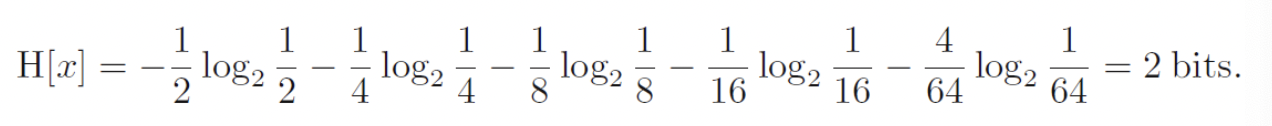* 예를 들어 (1/2, 1/4, 1/8, 1/16, 1/64, 1/64, 1/64, 1/64) 의 확률분포를 가질 때 위와 같이 계산 가능하다.