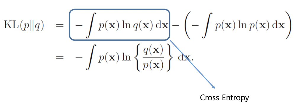 * 이러한 이유 때문에 Cross Entropy 식에서는 KL Divergence의 일부 term만을 가져와 사용하는 것이다.