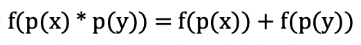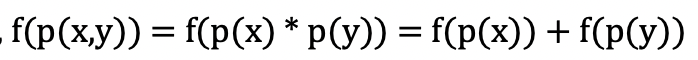 7) 자 이제 그러면 $f(x)$로 적절한 함수에 대해 생각해보자. '6)'을 만족하기 위해서는 log함수가 사용되어야 할 것이다. log(a*b) = log(a) + log(b) 이기 때문이다.