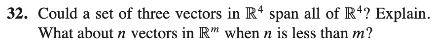* n이 m보다 작을 경우 m개의 row에 모두 pivot이 존재할 수 없기 때문에 span하는 것이 불가능하다.