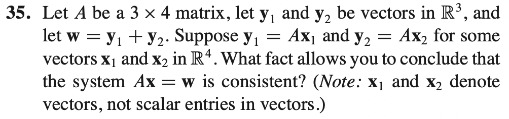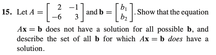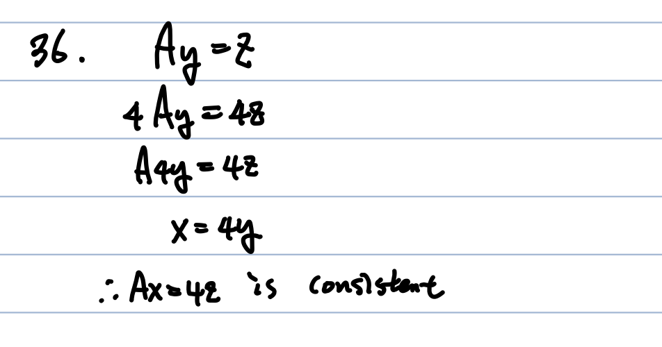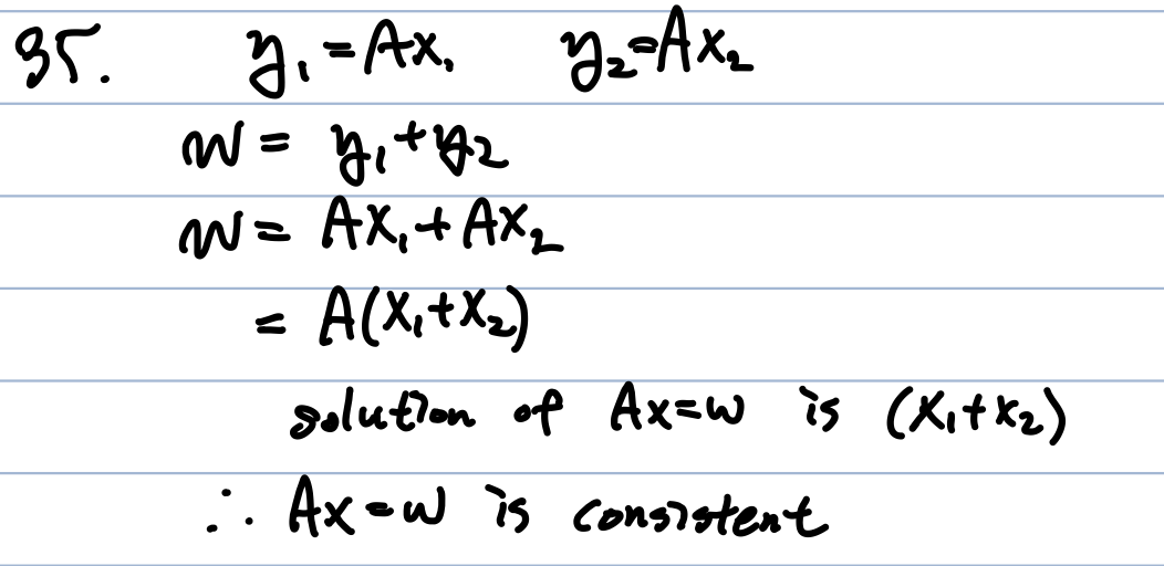 b) 적어도 1개 이상의 solution이 존재한다면 consistent하고, A의 linear combination으로 벡터 b를 표현 가능하다. True