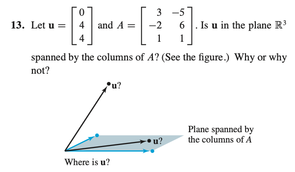 * Ax = u 의 해가 존재한다면 u는 A의 column들에 의해 span되는 것이라고 할 수 있다.