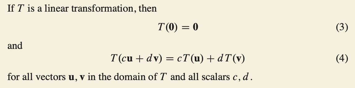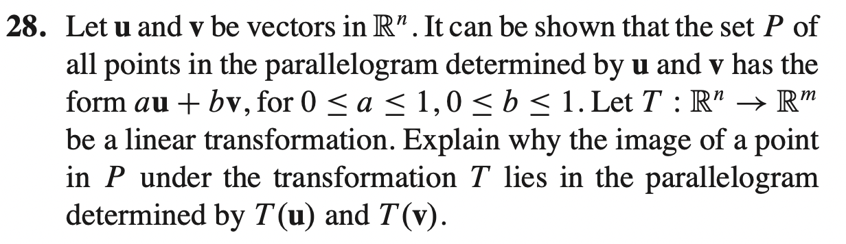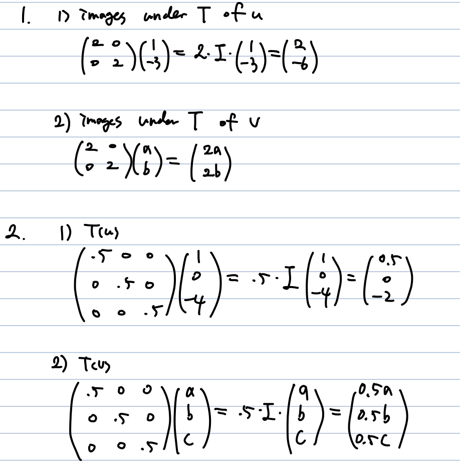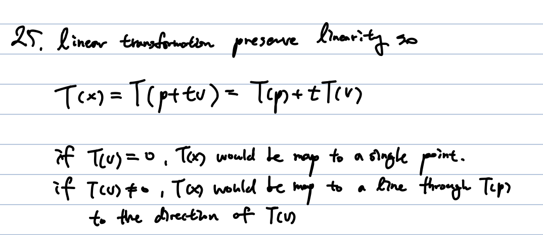 * 두 벡터가 선형종속일 경우 T의 image는 span{T(u), T(v)}인 origin을 지나는 line이 된다.