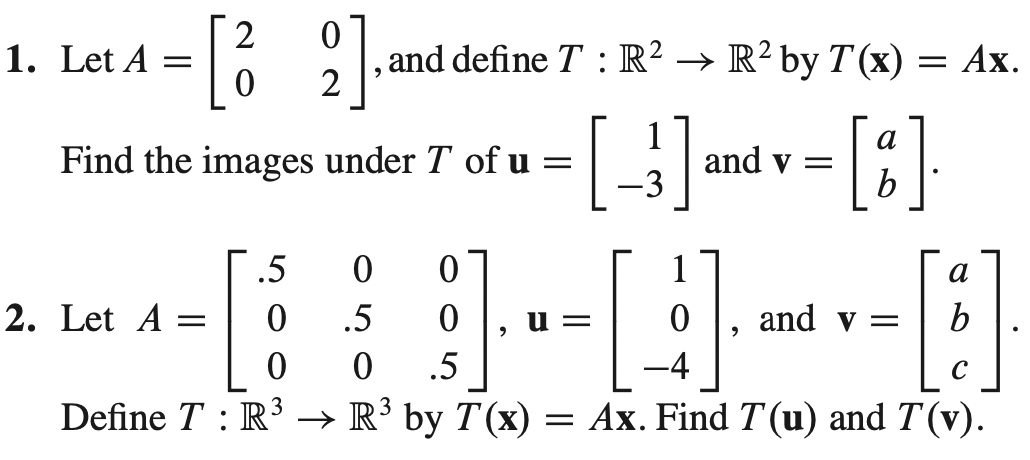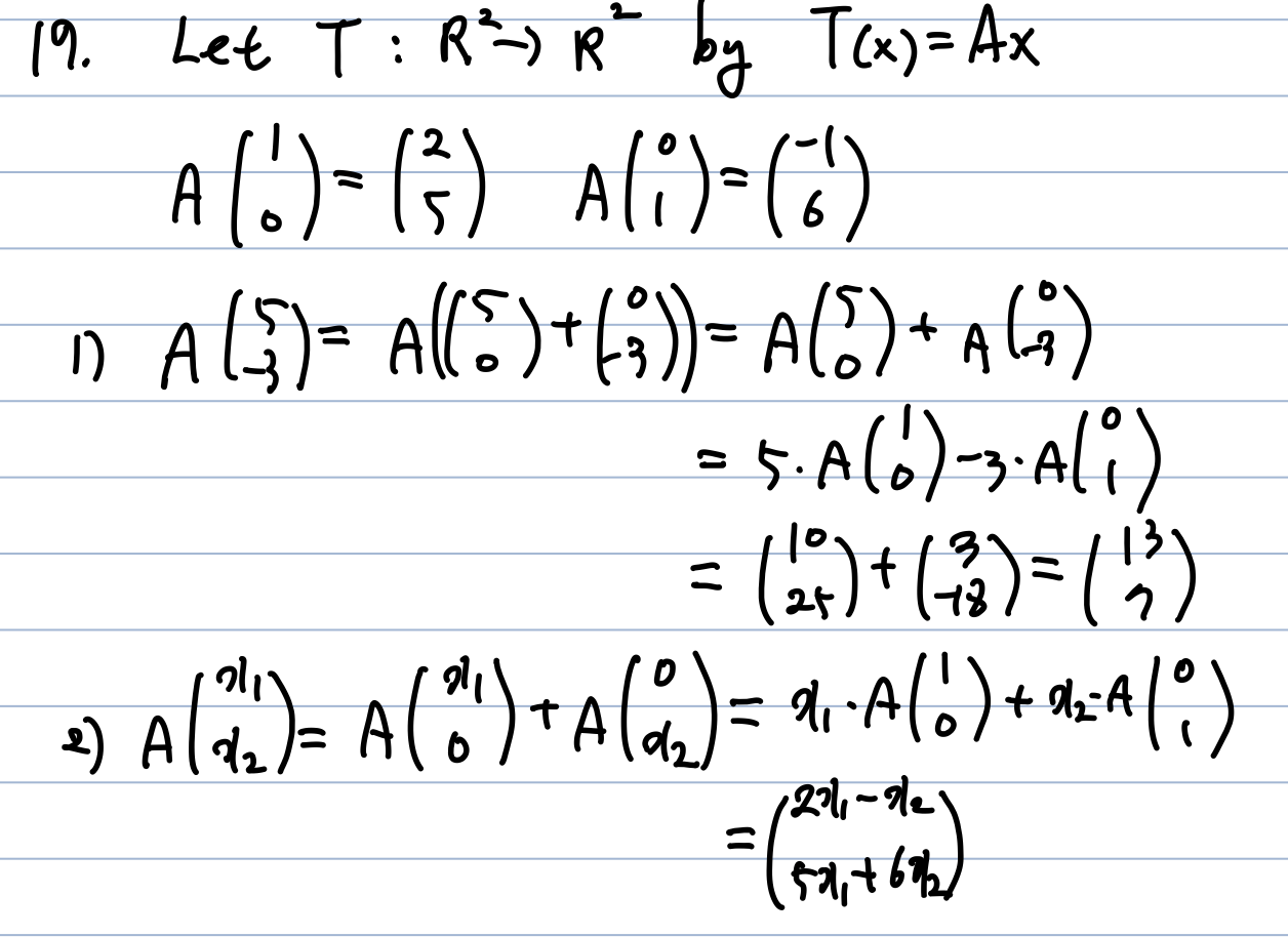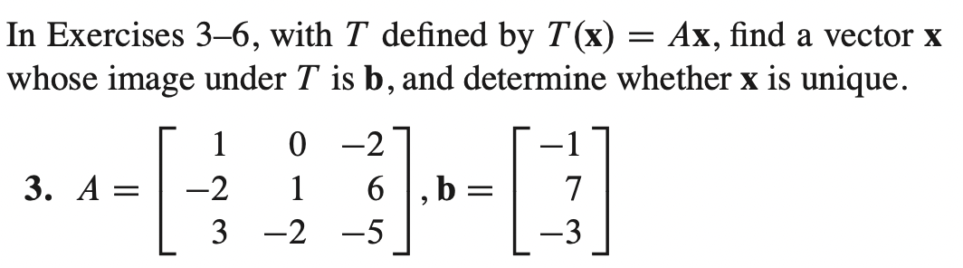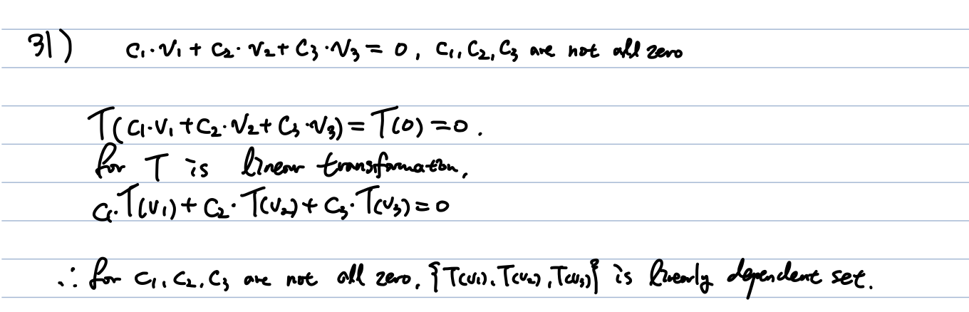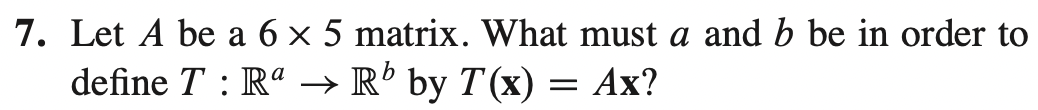 b) matrix A에 의해 transform된 벡터는 3차원 실수공간에 속하기 때문에 T의 domain이 3차원 실수공간이라는 명제는 참이다 -> True