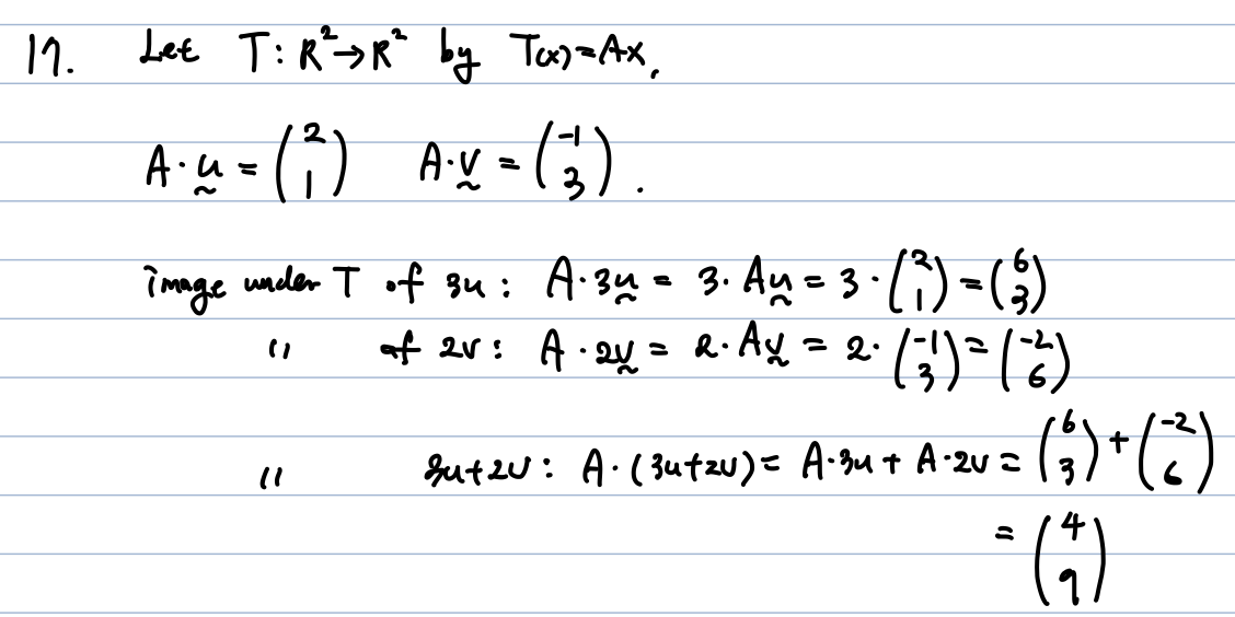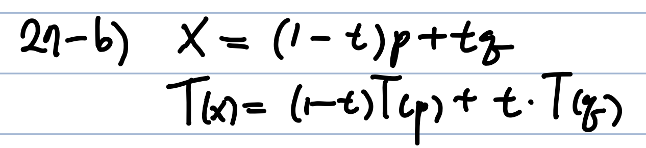 * T(p) = T(au + bv) = a*T(u) + b*T(v) 이다.