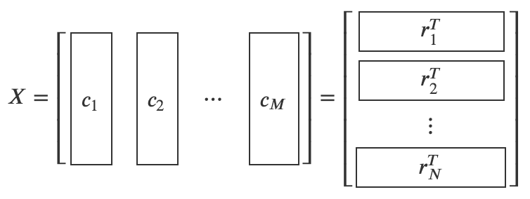 * NxM행렬은 Nx1 크기의 행 벡터와 1xM크기의 열 벡터로 이뤄져 있다고 표현이 가능하다.