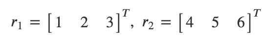 * 여기서 주의할 점은 벡터는 기본적으로 열 벡터이므로 행 벡터를 표현할 때 전치연산 T를 해줬다는 점이다.