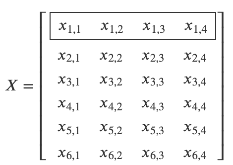 * 박스로 표시된 부분이 하나의 벡터를 나타낸다. 행렬의 행은 벡터로서 구성된다.