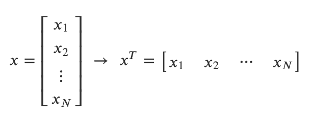 * 열 벡터에 대해 전치 연산을 적용한 것을 행 벡터라고 한다.