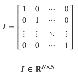 * 대각행렬 중에서도 모든 대각성분의 값이 1인 정방행렬을 항등행렬이라고 한다.