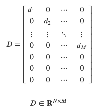 * 대각행렬을 떠올리면 정방행렬을 떠올리기 쉽지만, 정방행렬이 아니어도 위와 같이 대각행렬이 될 수 있다.