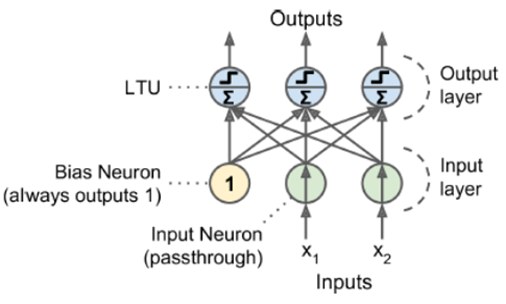 - 퍼셉트론은 TLU(Threshold Logic Unit), LTI(Linear threshold unit)
