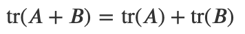3) 두 행렬의 합의 대각합은 두 행렬의 대각합의 합이다.