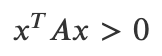 * 영 벡터가 아닌 모든 벡터 x에 대해 다음 부등식이 성립하면 행렬 A가 양의 정부호라고 한다.