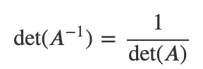 6) 역행렬의 행렬식은 원래의 행렬의 행렬식의 역수와 같다.