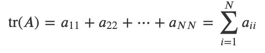 * 대각 원소들의 합을 뜻하며, 정방행렬에 대해서만 정의된다.