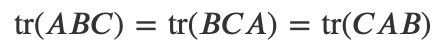 5) 세 행렬의 곱의 대각합은 다음과 같이 순서를 순환시켜도 달라지지 않는다.