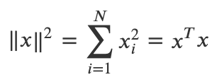 * norm은 벡터에 대해서도 정의 가능하다. 벡터의 norm에서 중요한 성질은 벡터의 norm의 제곱이 벡터의 제곱합과 동일하다는 것이다.