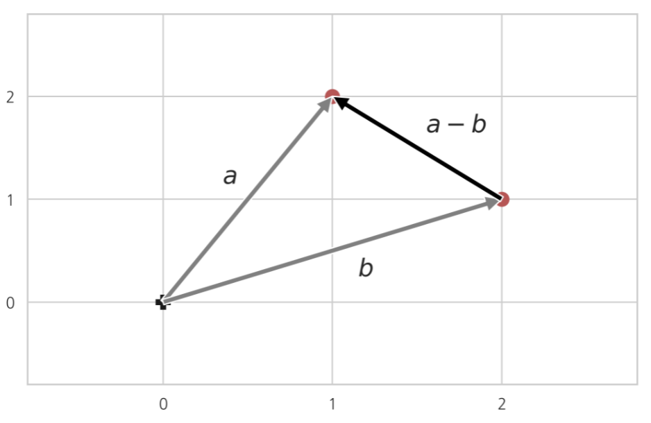 * 두 벡터가 가리키는 점 사이의 거리를 유클리드 거리라고 한다.