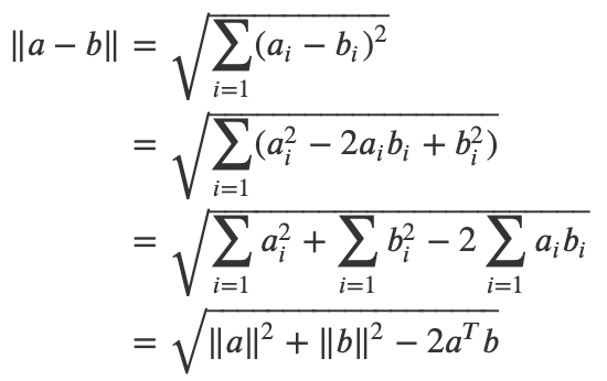* 유클리드 거리에 의하면 b, c가 가장 가깝고, a, b가 가장 멀다.