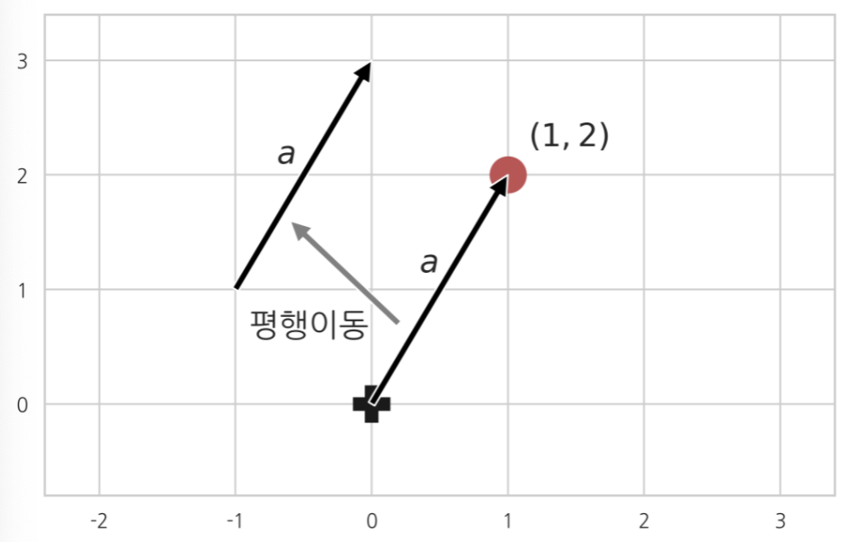 * 벡터를 화살표로 생각할 때, 길이와 방향을 유지한 채 평행이동하는 것이 가능하다.