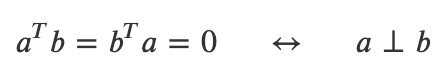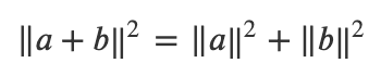 * 직교하는 두 N차원 벡터 a, b는 다음 식이 성립한다.