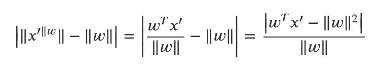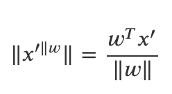 * 직선 $w^T x - ||w||^2 = 0$과 이 직선 위에 있지 않은 점 $x'$ 사이의 거리를 구해보자.