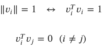 * N개의 단위벡터 $v_1, v_2, ... , v_N$가 서로 직교하면 정규직교라고 한다.