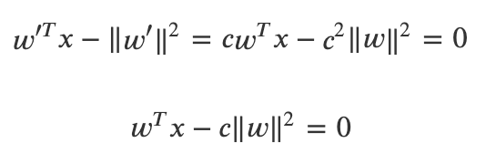 * $c||w||^2$는 임의의 수(스칼라 값)가 될 수 있으므로 $w_0$으로 대체할 수 있다.