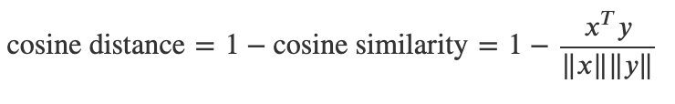 * 코사인 유사도를 사용하면 코사인 거리(cosine distance)를 계산할 수 있다.