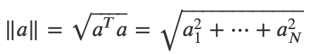 * 벡터 a의 길이는 norm $ ||a|| $로 정의한다.