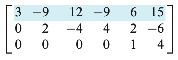 3) 각 row의 leading entry 위치는 바로 위 row의 leading entry보다 더 오른쪽(동등위치 x)