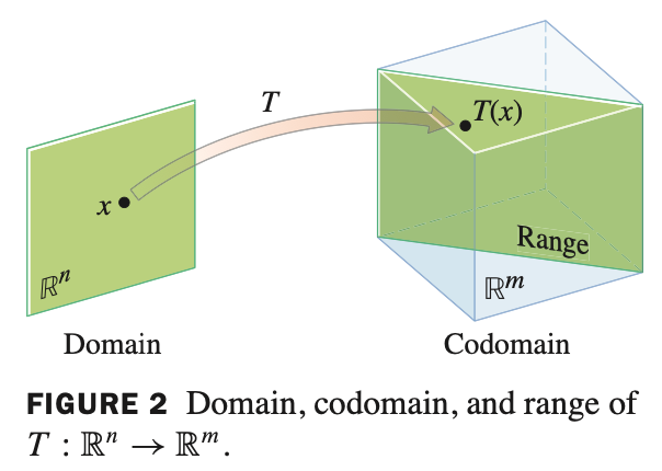 * T(x)를 x의 image라고 하고, image의 모든 셋을 뜻하는 T를 range라고 한다.
