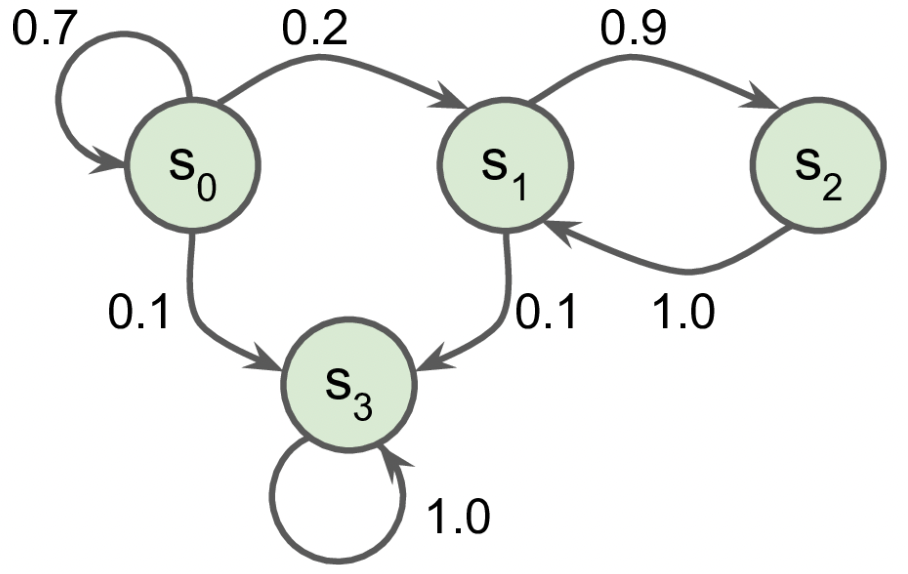 [0.7, 0.2, 0.0, 0.1], # from s0 to s0, s1, s2, s3