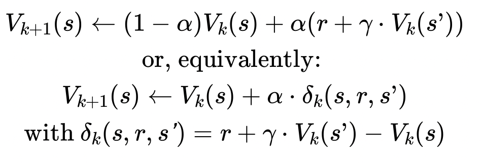 * 이 표기법을 사용하면 첫 번째 TD learning algorithm 식을 다음과 같이 변환할 수 있다.