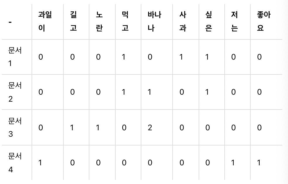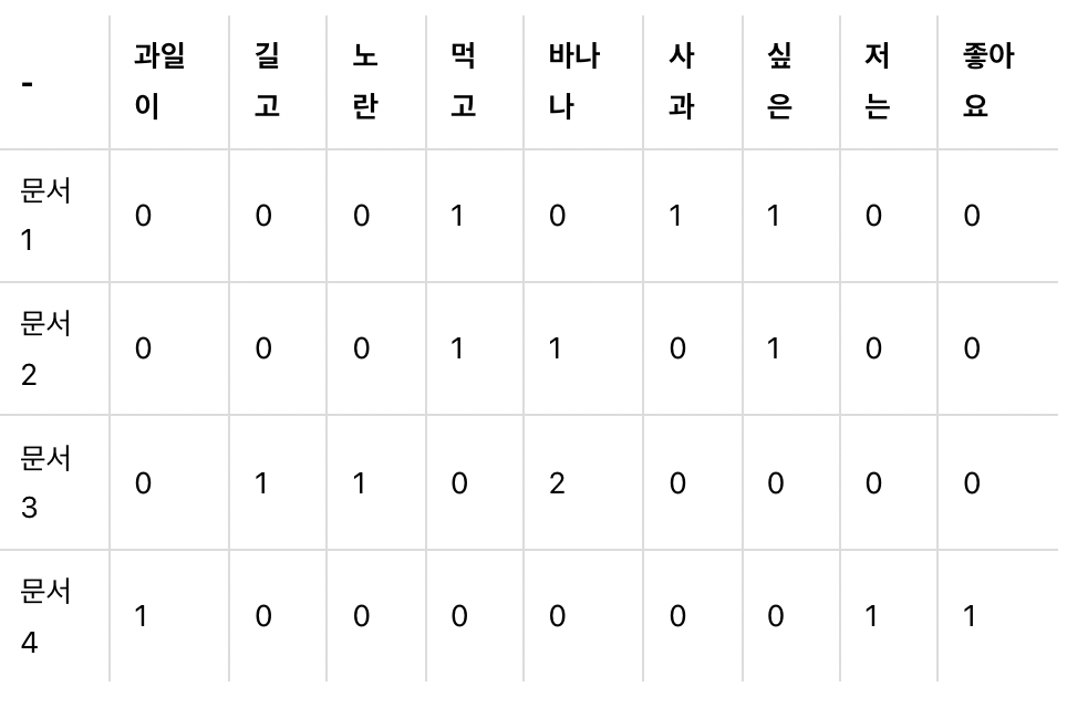 * 여러 개의 BoW vector를 결합한 것을 DTM이라고 한다.