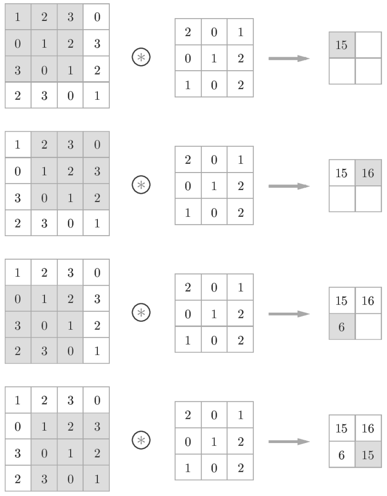 * Convolution layer에서의 Convolution operation은 이미지 처리에서 말하는 필터 연산과 같다. 필터는 참고로 kernel이라고 부르기도 한다.
