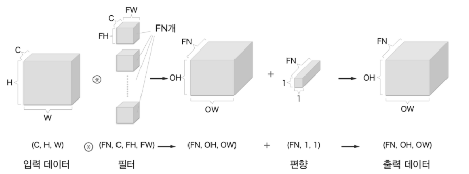 * 필터를 FN개를 사용하면, 출력되는 feature map도 FN개가 된다.