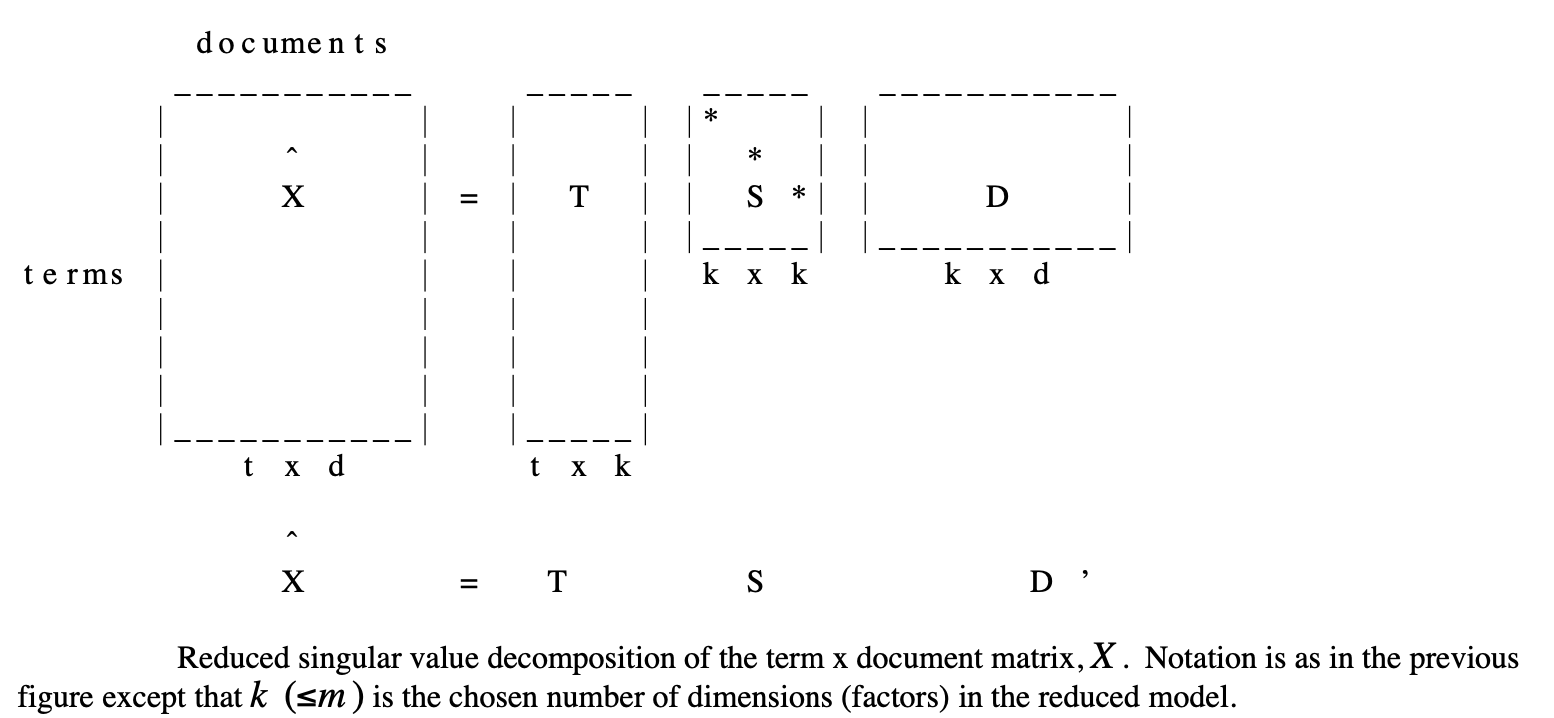 * 이를 통해 원본 문서의 similarity behavior는 더 작은 수의 factor들(더 낮은 차원의)의 값으로 근사된다.