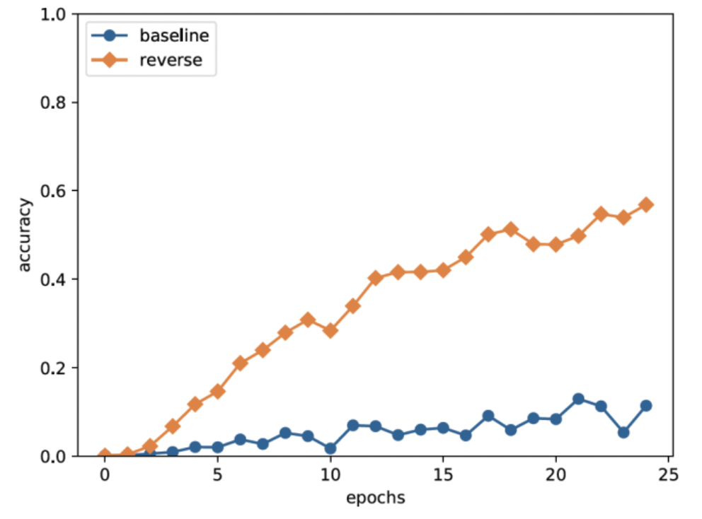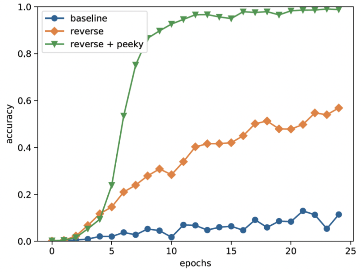 * 이 peeky seq2seq을 사용했을 때의 훈련 결과를 확인해보자. 추가적으로 입력 반전까지 시행한 상태이다.