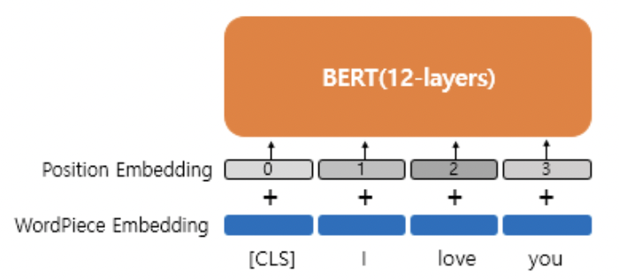 * BERT에서는 position embedding vector를 학습 가능한 벡터로서 취급한다. 때문에 BERT의 문장 최대 길이인 512개의 position embedding vector가 학습될 수 있다.