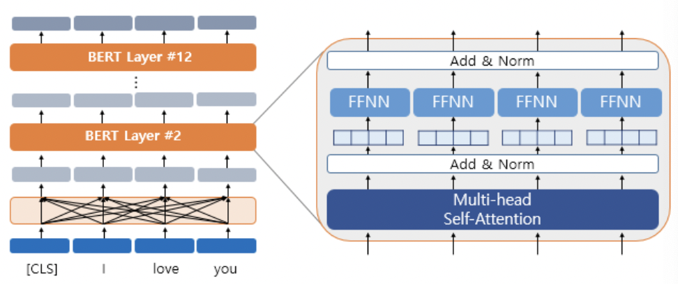 * 위에서 볼 수 있다시피 BERT는 trasnformer의 encoder를 쌓아 올린 구조이다.