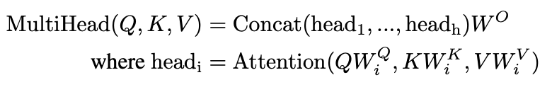 * Multi-head attention을 수식으로 표현하면 아래와 같다.