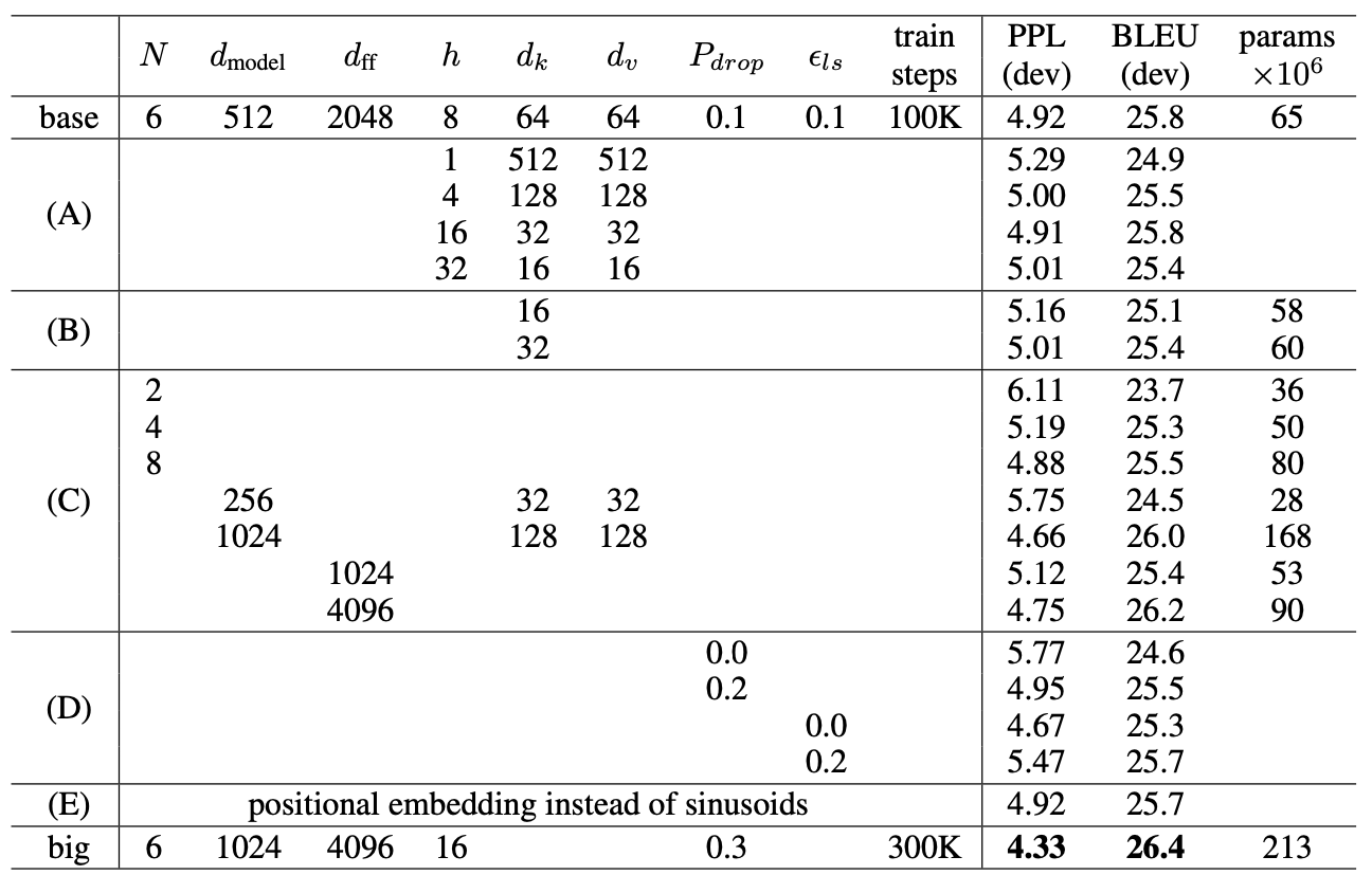 * Big model - 각 training step은 1초 소요, 300,000 step을 3.5일동안 학습.