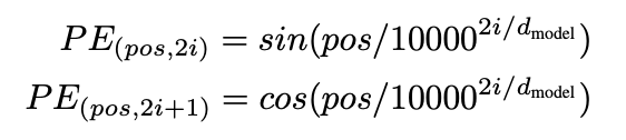 * pos는 embedding vector의 position을 나타내며, i는 차원의 index를 나타낸다.